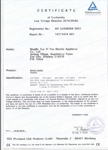 A Ningbo Zuoyiyou Electric Appliance Co., Ltd, com sede em Guanhaiwei Zone, Cixi, Ningbo, é especializada em halogênio, quartzo, convector, parede, PTC, carbono, aquecedores de ventilador, além de ventiladores e refrigeradores de ar. Registrado em 2015, mantém várias patentes de aparência por seus diversos produtos de aquecedor. Desde a sua criação, a empresa realizou principalmente o OEM trabalho e as exportações. Enquanto isso, ele se concentra na P&D de energia - economizando estética de tecnologia e produto, com um laboratório dedicado com o objetivo de melhorar o nível técnico da indústria global de aquecedores, enriquecer a aparência do produto, aumentar a popularidade do produto e desenvolver aquecedores de borda. Integração de P&D, fabricação, suprimento de peças, comércio internacional, marketing e serviço, pretende ser um fornecedor de eletrodomésticos globais de primeira linha.
